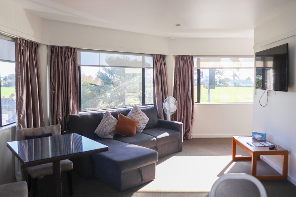 You’ll also find a flat-screen TV with Sky channels, a dining table, and a comfortable lounge area, the perfect spot to unwind after a day of exploring Nelson. The real highlight is your private bathroom, complete with a spa bath and your very own personal sauna, the perfect way to unwind after a day exploring Nelson’s beaches, cafés, and local attractions.